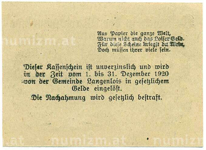 Купить 10 геллеров 1920 года Австрия — Лангенлойс (Нотгельд) по привлекательной цене можно в нашем интернет-магазине — Вам достаточно оформить заказ на сайте. Все монеты, представленные в каталоге, находятся в наличии на нашем складе.