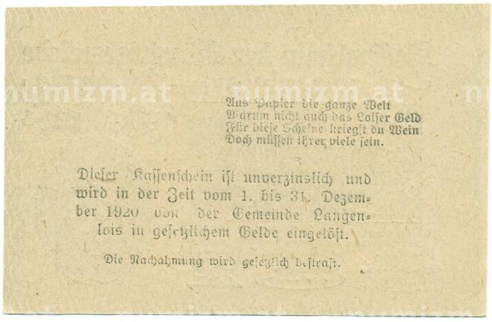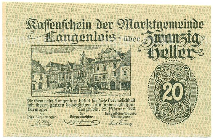Купить 20 геллеров 1920 года Австрия — Лангенлойс (Нотгельд) по привлекательной цене можно в нашем интернет-магазине — Вам достаточно оформить заказ на сайте. Все монеты, представленные в каталоге, находятся в наличии на нашем складе.