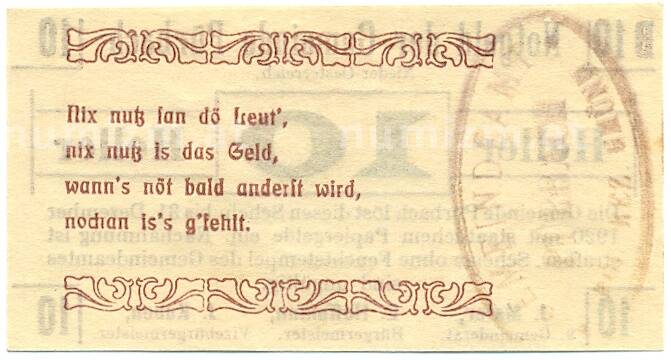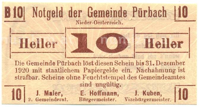 Купить 10 геллеров 1920 года Австрия — Пюрбах (Нотгельд) по привлекательной цене можно в нашем интернет-магазине — Вам достаточно оформить заказ на сайте. Все монеты, представленные в каталоге, находятся в наличии на нашем складе.