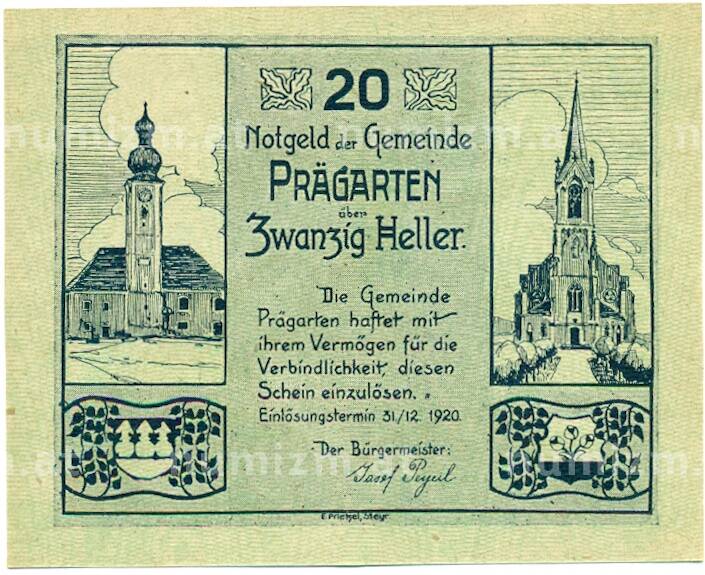 Купить 20 геллеров 1920 года Австрия — Прагартен (Нотгельд) по привлекательной цене можно в нашем интернет-магазине — Вам достаточно оформить заказ на сайте. Все монеты, представленные в каталоге, находятся в наличии на нашем складе.