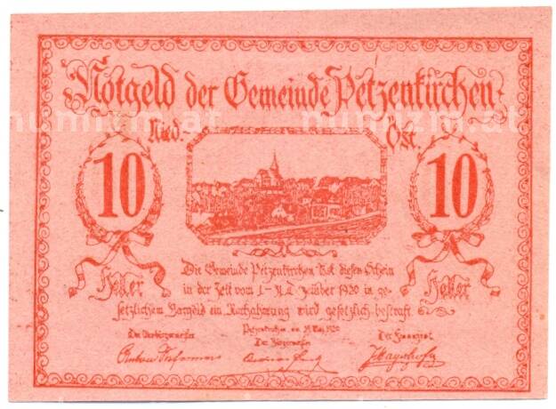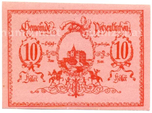 Купить 10 геллеров 1920 года Австрия — Петценкирхен (Нотгельд) по привлекательной цене можно в нашем интернет-магазине — Вам достаточно оформить заказ на сайте. Все монеты, представленные в каталоге, находятся в наличии на нашем складе.