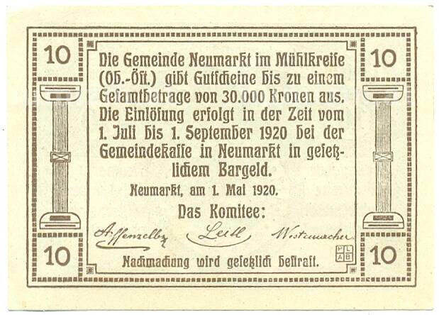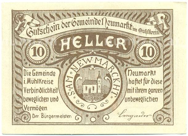 Купить 10 геллеров 1920 года Австрия — Ноймаркт-им-Мюлькрайс (Нотгельд) по привлекательной цене можно в нашем интернет-магазине — Вам достаточно оформить заказ на сайте. Все монеты, представленные в каталоге, находятся в наличии на нашем складе.