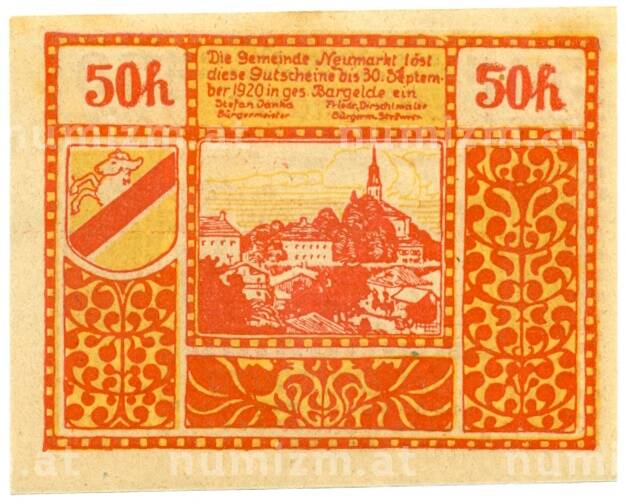 Купить 50 геллеров 1920 года Австрия — Ноймаркт-ам-Валлерзее (Нотгельд) по привлекательной цене можно в нашем интернет-магазине — Вам достаточно оформить заказ на сайте. Все монеты, представленные в каталоге, находятся в наличии на нашем складе.