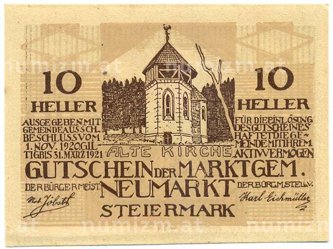 Купить 10 геллеров 1920 года Австрия — Ноймаркт (Штирия) Нотгельд по привлекательной цене можно в нашем интернет-магазине — Вам достаточно оформить заказ на сайте. Все монеты, представленные в каталоге, находятся в наличии на нашем складе.
