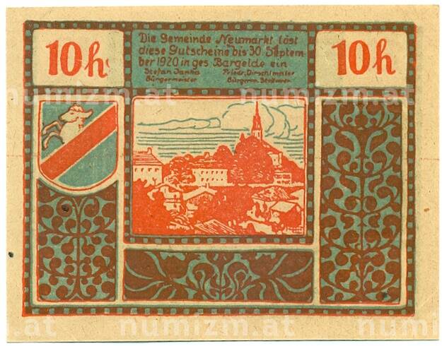 Купить 10 геллеров 1920 года Австрия — Ноймаркт-ам-Валлерзее (Нотгельд) по привлекательной цене можно в нашем интернет-магазине — Вам достаточно оформить заказ на сайте. Все монеты, представленные в каталоге, находятся в наличии на нашем складе.