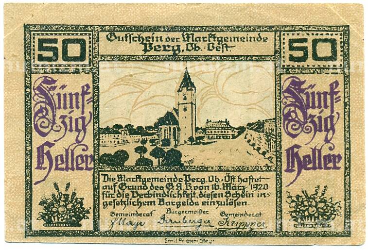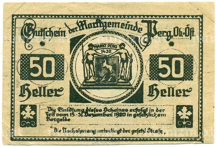 Купить 50 геллеров 1920 года Австрия — Перг (Нотгельд) по привлекательной цене можно в нашем интернет-магазине — Вам достаточно оформить заказ на сайте. Все монеты, представленные в каталоге, находятся в наличии на нашем складе.
