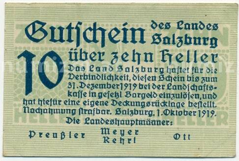 Купить 10 геллеров 1919 года Австрия — Зальцбург (Нотгельд) по привлекательной цене можно в нашем интернет-магазине — Вам достаточно оформить заказ на сайте. Все монеты, представленные в каталоге, находятся в наличии на нашем складе.
