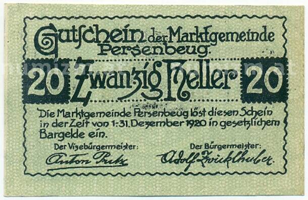 Купить 20 геллеров 1920 года Австрия — Перзенбойг (Нотгельд) по привлекательной цене можно в нашем интернет-магазине — Вам достаточно оформить заказ на сайте. Все монеты, представленные в каталоге, находятся в наличии на нашем складе.
