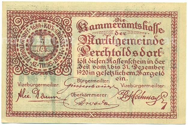 Купить 20 геллеров 1920 года Австрия — Перхтольдсдорф (Нотгельд) по привлекательной цене можно в нашем интернет-магазине — Вам достаточно оформить заказ на сайте. Все монеты, представленные в каталоге, находятся в наличии на нашем складе.
