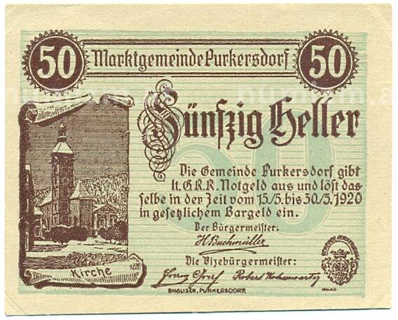 Купить 50 геллеров 1920 года Австрия — Пуркерсдорф (Нотгельд) по привлекательной цене можно в нашем интернет-магазине — Вам достаточно оформить заказ на сайте. Все монеты, представленные в каталоге, находятся в наличии на нашем складе.
