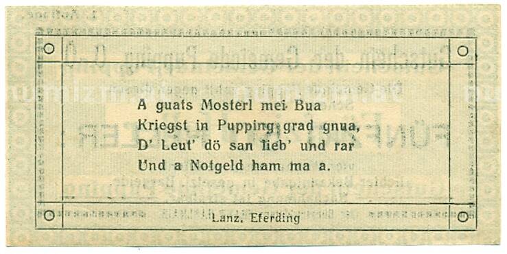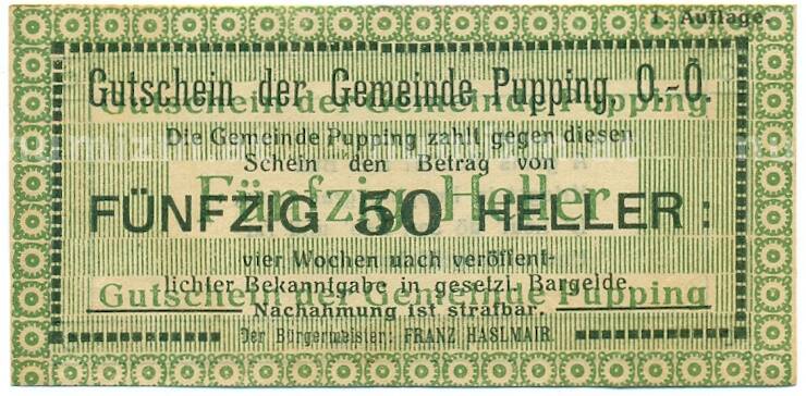 Купить 50 геллеров 1920 года Австрия — Пуппинг (Нотгельд) по привлекательной цене можно в нашем интернет-магазине — Вам достаточно оформить заказ на сайте. Все монеты, представленные в каталоге, находятся в наличии на нашем складе.