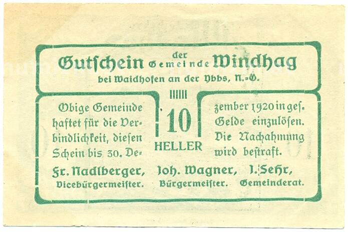 Купить 10 геллеров 1920 года Австрия — Вайдхофен-ан-дер-Ибс (Нотгельд) по привлекательной цене можно в нашем интернет-магазине — Вам достаточно оформить заказ на сайте. Все монеты, представленные в каталоге, находятся в наличии на нашем складе.