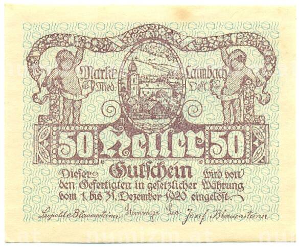 Купить 50 геллеров 1920 года Австрия — Ламбах (Нотгельд) по привлекательной цене можно в нашем интернет-магазине — Вам достаточно оформить заказ на сайте. Все монеты, представленные в каталоге, находятся в наличии на нашем складе.