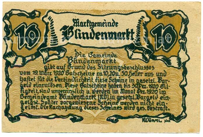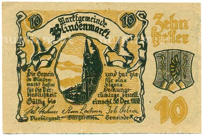 Купить 10 геллеров 1920 года Австрия — Блинденмаркт (Нотгельд) по привлекательной цене можно в нашем интернет-магазине — Вам достаточно оформить заказ на сайте. Все монеты, представленные в каталоге, находятся в наличии на нашем складе.