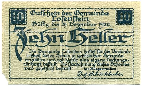 Купить 10 геллеров 1919 года Австрия — Лозенштайн (Нотгельд) по привлекательной цене можно в нашем интернет-магазине — Вам достаточно оформить заказ на сайте. Все монеты, представленные в каталоге, находятся в наличии на нашем складе.