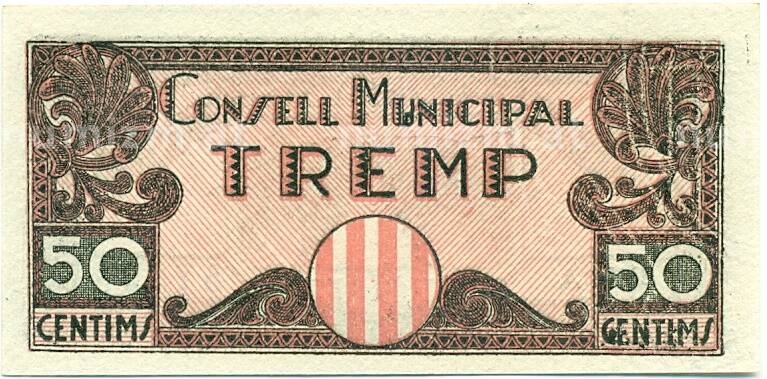 Купить 50 сентимо 1937 года Тремп (Гражданская Война в Испании) по привлекательной цене можно в нашем интернет-магазине — Вам достаточно оформить заказ на сайте. Все монеты, представленные в каталоге, находятся в наличии на нашем складе.