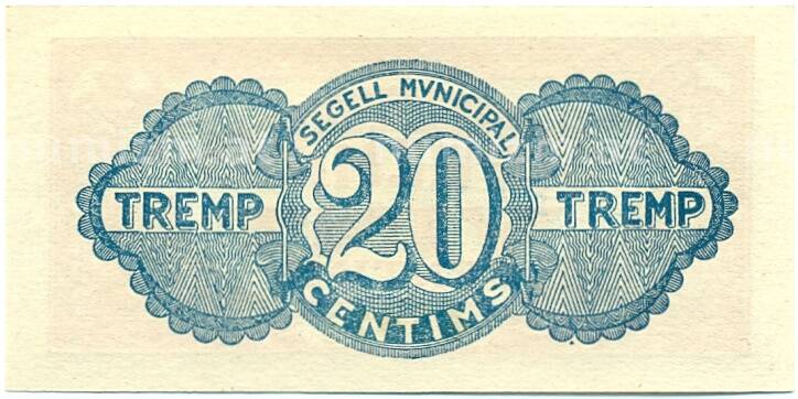 Купить 20 сентимо 1937 года Тремп (Гражданская Война в Испании) по привлекательной цене можно в нашем интернет-магазине — Вам достаточно оформить заказ на сайте. Все монеты, представленные в каталоге, находятся в наличии на нашем складе.