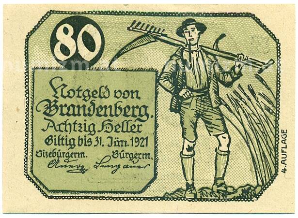 Купить 80 геллеров 1921 года Австрия — Бранденбург (Нотгельд) по привлекательной цене можно в нашем интернет-магазине — Вам достаточно оформить заказ на сайте. Все монеты, представленные в каталоге, находятся в наличии на нашем складе.