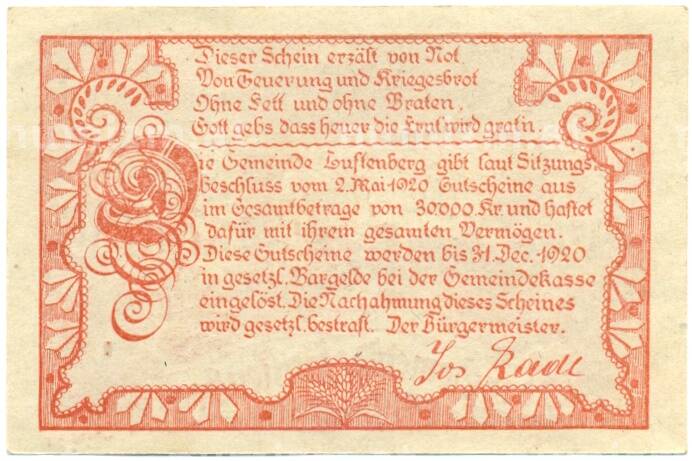 Купить 50 геллеров 1920 года Австрия — Луфтенберг (Нотгельд) по привлекательной цене можно в нашем интернет-магазине — Вам достаточно оформить заказ на сайте. Все монеты, представленные в каталоге, находятся в наличии на нашем складе.