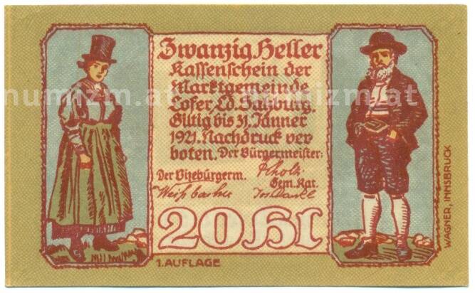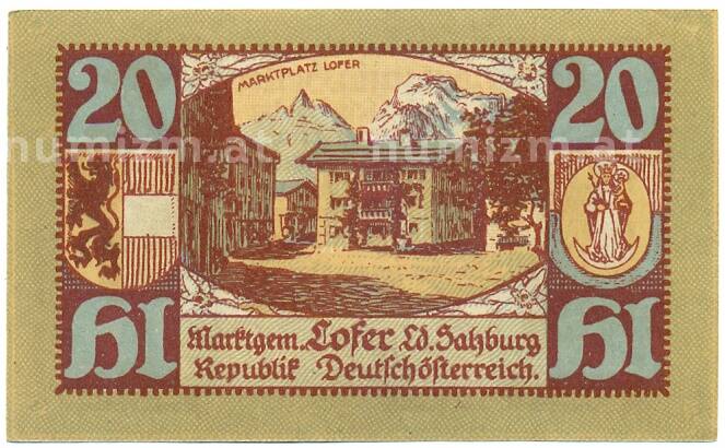 Купить 20 геллеров 1921 года Австрия — Лофер (Нотгельд) по привлекательной цене можно в нашем интернет-магазине — Вам достаточно оформить заказ на сайте. Все монеты, представленные в каталоге, находятся в наличии на нашем складе.
