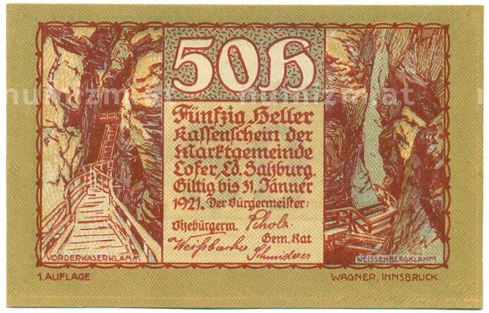Купить 50 геллеров 1921 года Австрия — Лофер (Нотгельд) по привлекательной цене можно в нашем интернет-магазине — Вам достаточно оформить заказ на сайте. Все монеты, представленные в каталоге, находятся в наличии на нашем складе.