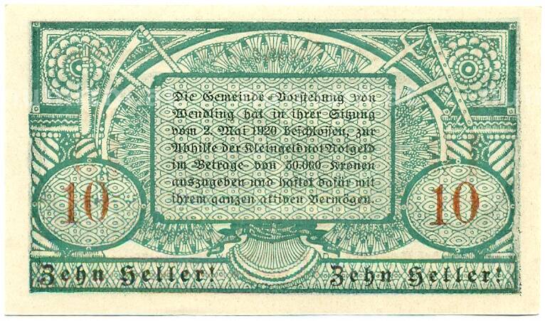 Купить 10 геллеров 1920 года Австрия — Вендлинг (Нотгельд) по привлекательной цене можно в нашем интернет-магазине — Вам достаточно оформить заказ на сайте. Все монеты, представленные в каталоге, находятся в наличии на нашем складе.