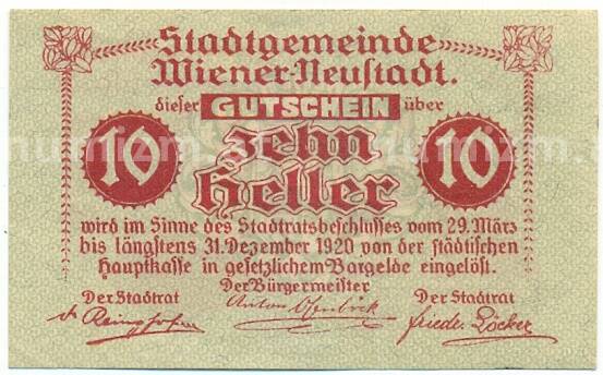 Купить 10 геллеров 1920 года Австрия — Винер-Нойштадта (Нотгельд) по привлекательной цене можно в нашем интернет-магазине — Вам достаточно оформить заказ на сайте. Все монеты, представленные в каталоге, находятся в наличии на нашем складе.