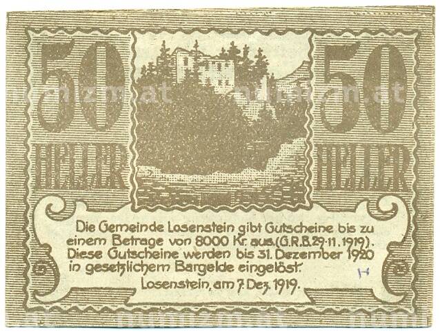 Купить 50 геллеров 1919 года Австрия — Лозенштайн (Нотгельд) по привлекательной цене можно в нашем интернет-магазине — Вам достаточно оформить заказ на сайте. Все монеты, представленные в каталоге, находятся в наличии на нашем складе.