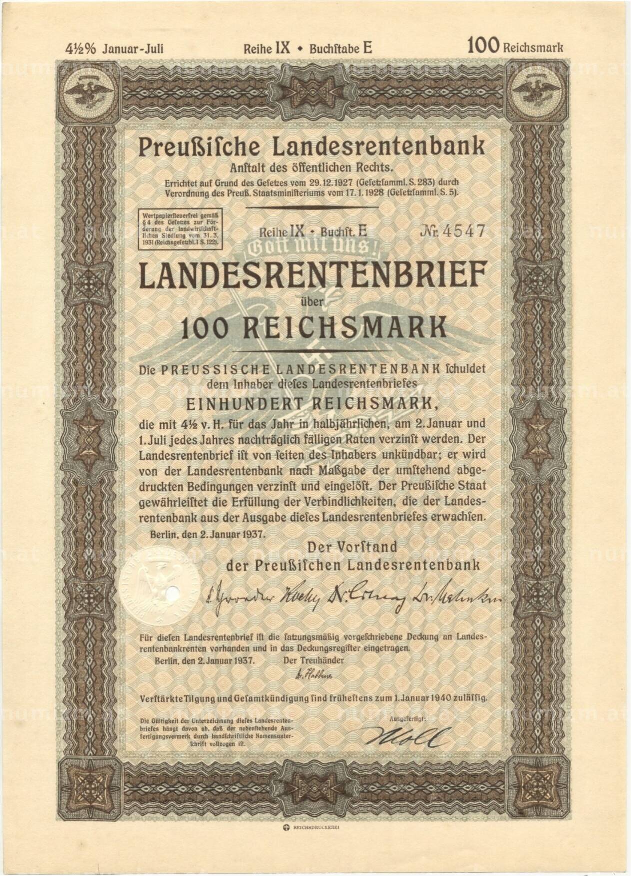 Акция (облигация) 100 рейхсмарок 1937 года Германия (Артикул: B2-6409): подробные характеристики, качественные фотографии в высоком разрешении, низкая цена.
