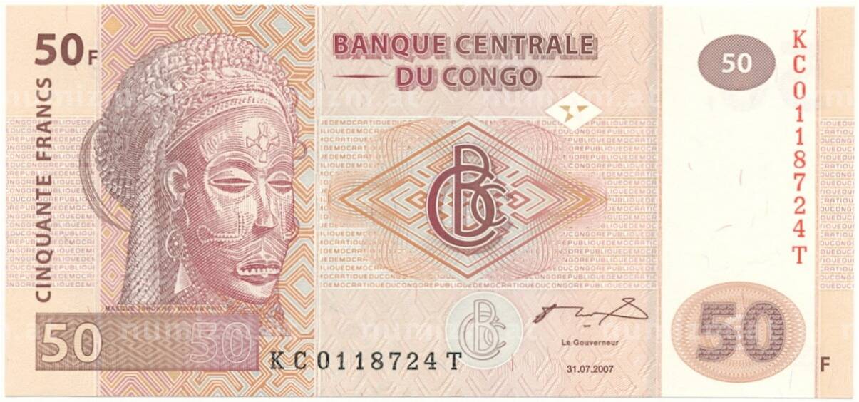 20.01.2025Интернет магазин «Нумизмат» предлагает приобрести 50 франков 2007 года Конго (ДРК).