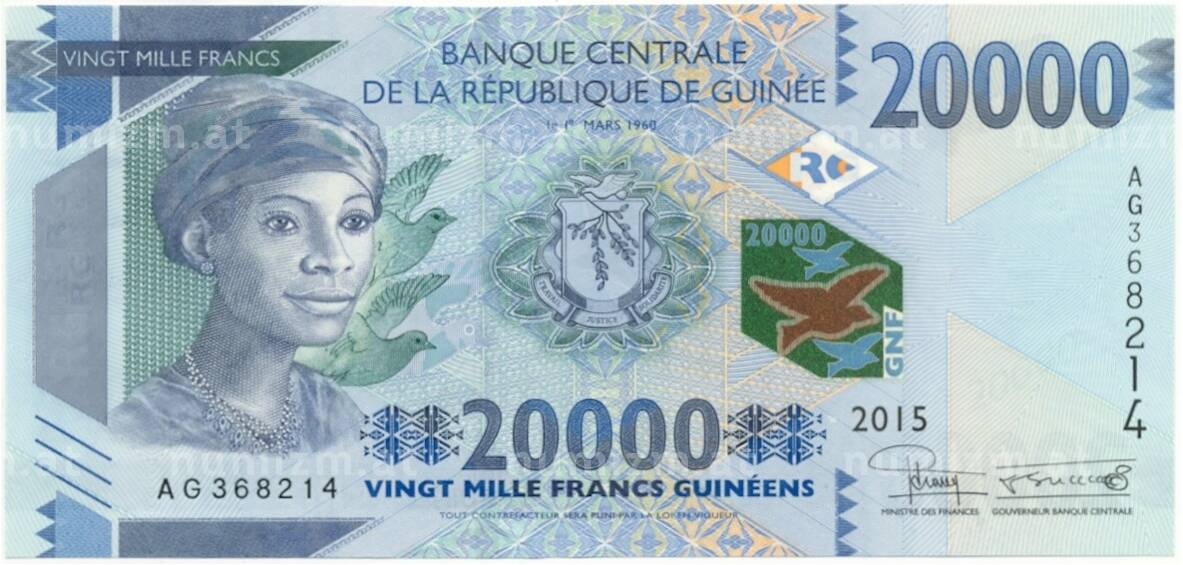 20.01.2025Интернет магазин «Нумизмат» предлагает приобрести 20000 франков 2015 года Гвинея.