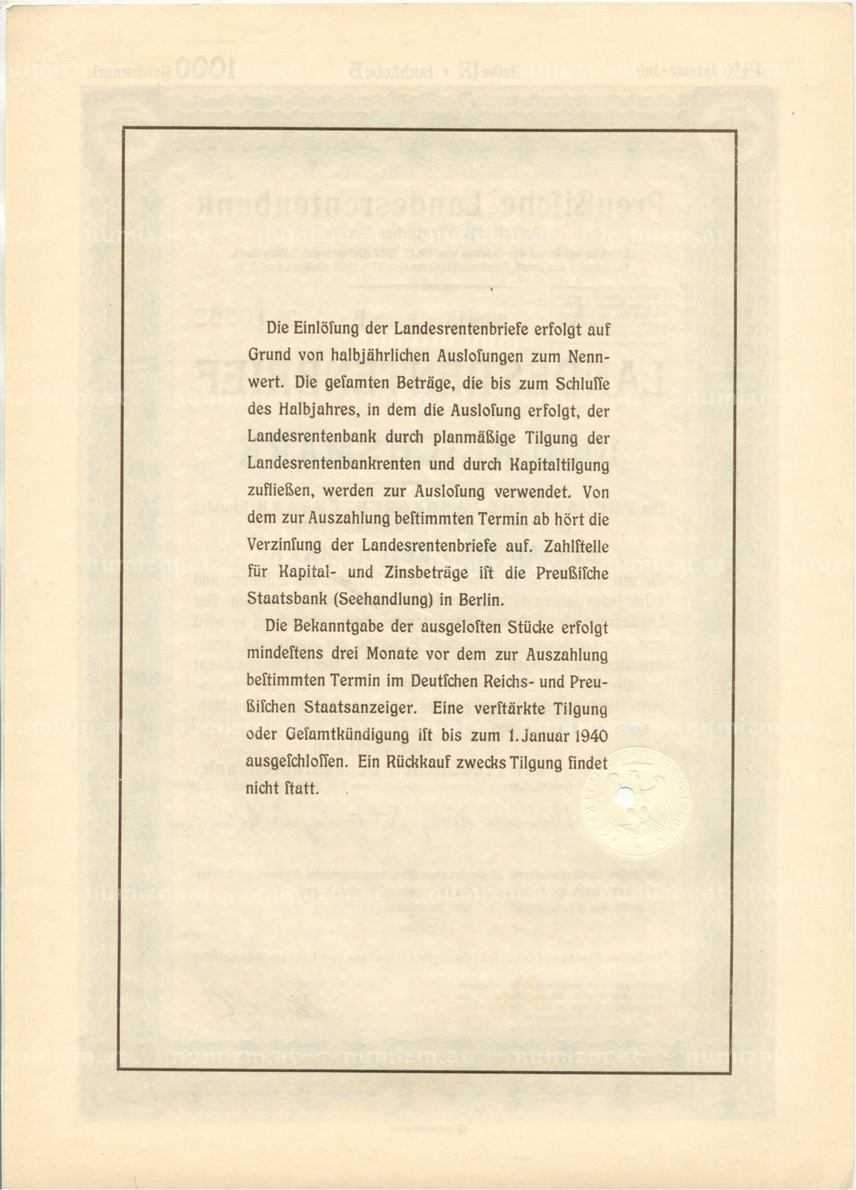 4 1/2% акция (облигация) 1000 рейхсмарок 1940 года Германия (Артикул: B2-8657): подробные характеристики, качественные фотографии в высоком разрешении, низкая цена.