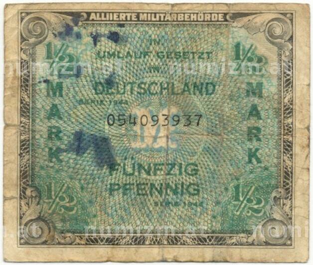 20.01.2025Интернет магазин «Нумизмат» предлагает приобрести 1/2 марки 1944 года Германия (Оккупация Союзными войсками).