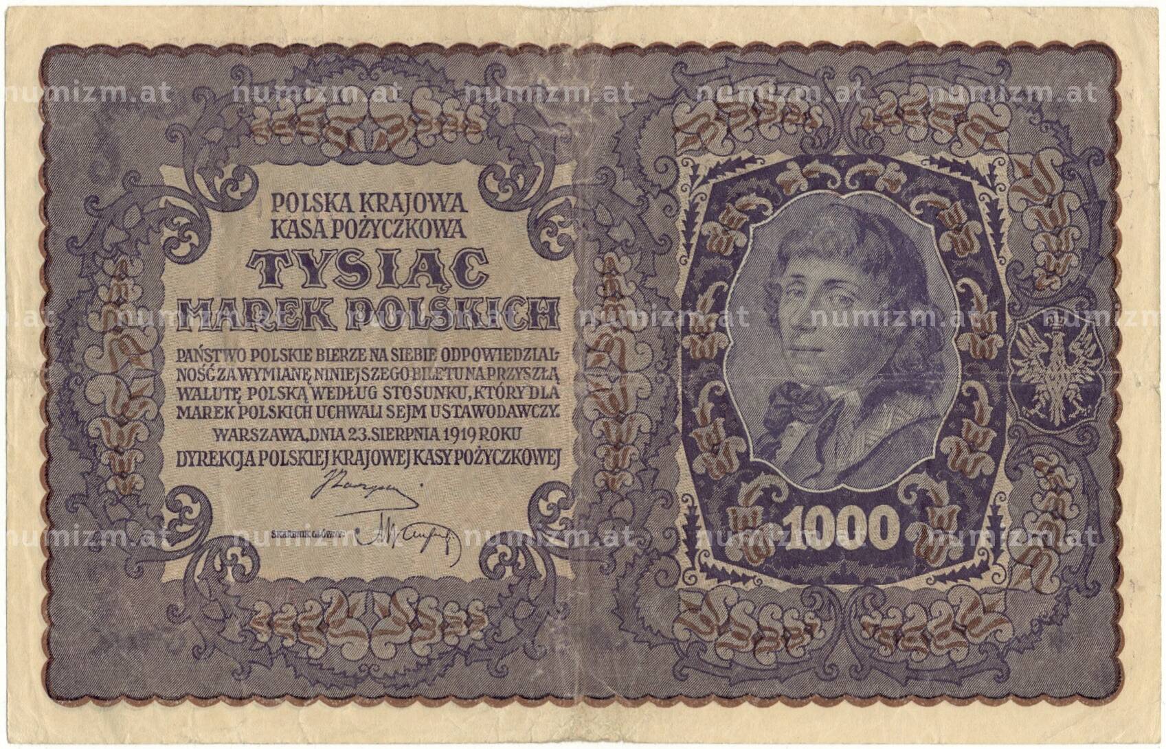 Банкнота 1000 марок 1919 года Польша (Артикул: B2-9053): подробные характеристики, качественные фотографии в высоком разрешении, низкая цена.