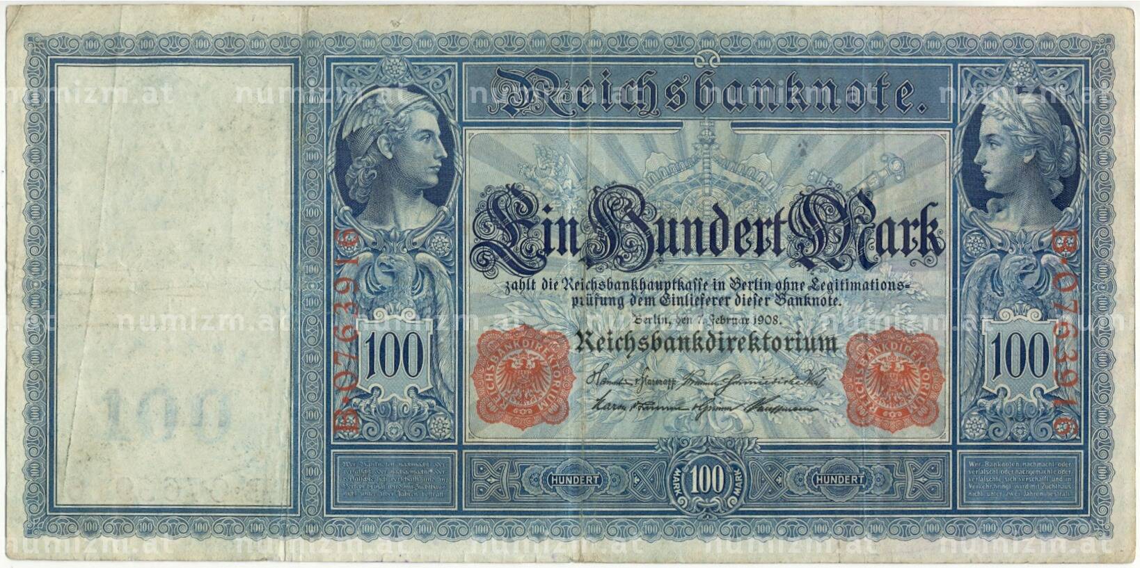 Банкнота 100 марок 1908 года Германия (Артикул: B2-9399): подробные характеристики, качественные фотографии в высоком разрешении, низкая цена.