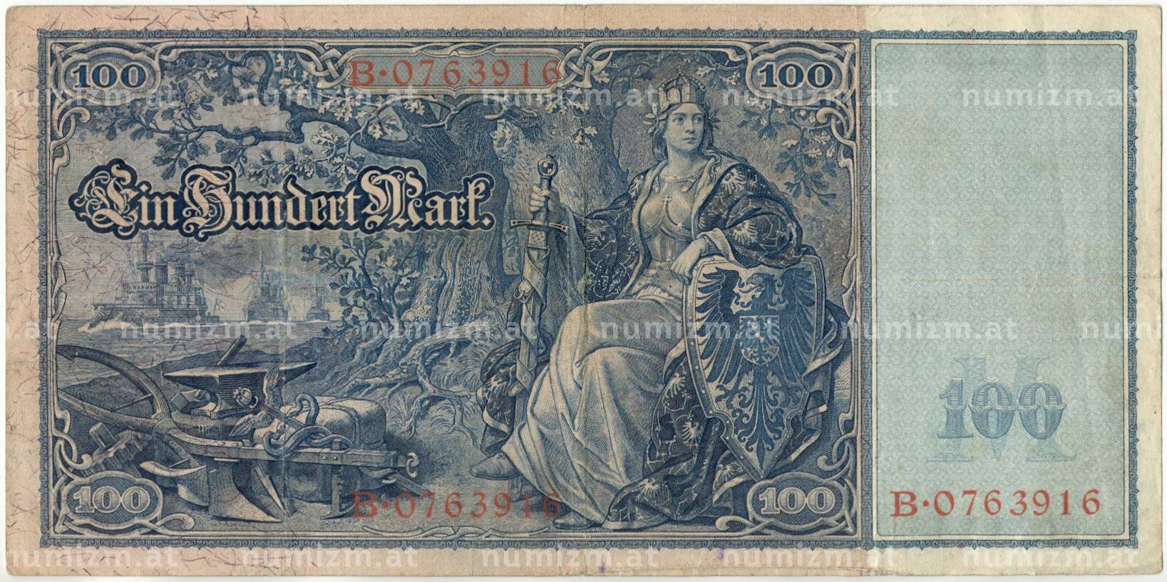 • Банкнота 100 марок 1908 года Германия (Артикул: B2-9399) — Фото №1 Банкнота 100 марок 1908 года Германия (Артикул: B2-9399) — Фото №2