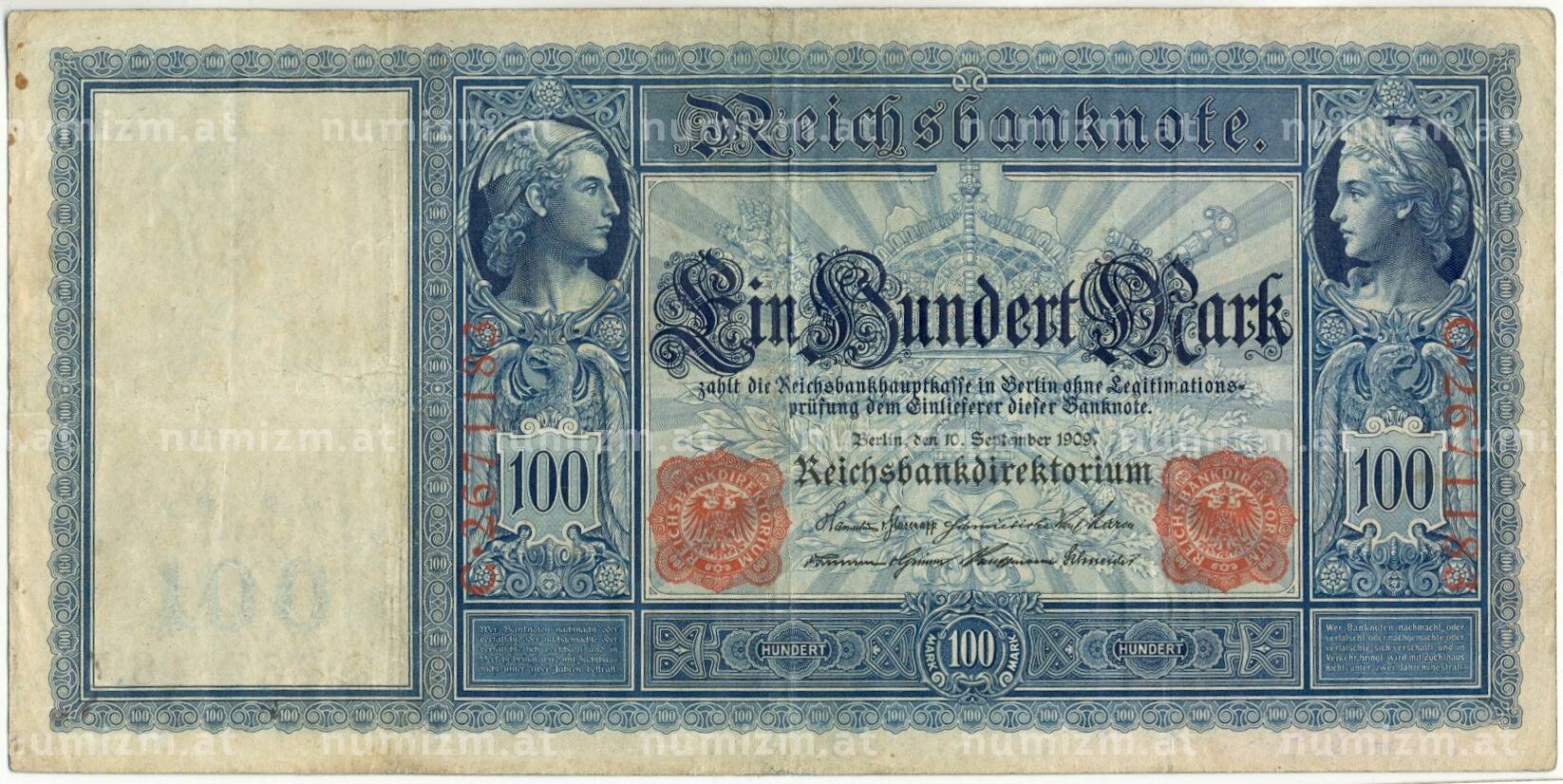 Банкнота 100 марок 1909 года Германия (Артикул: B2-9402): подробные характеристики, качественные фотографии в высоком разрешении, низкая цена.