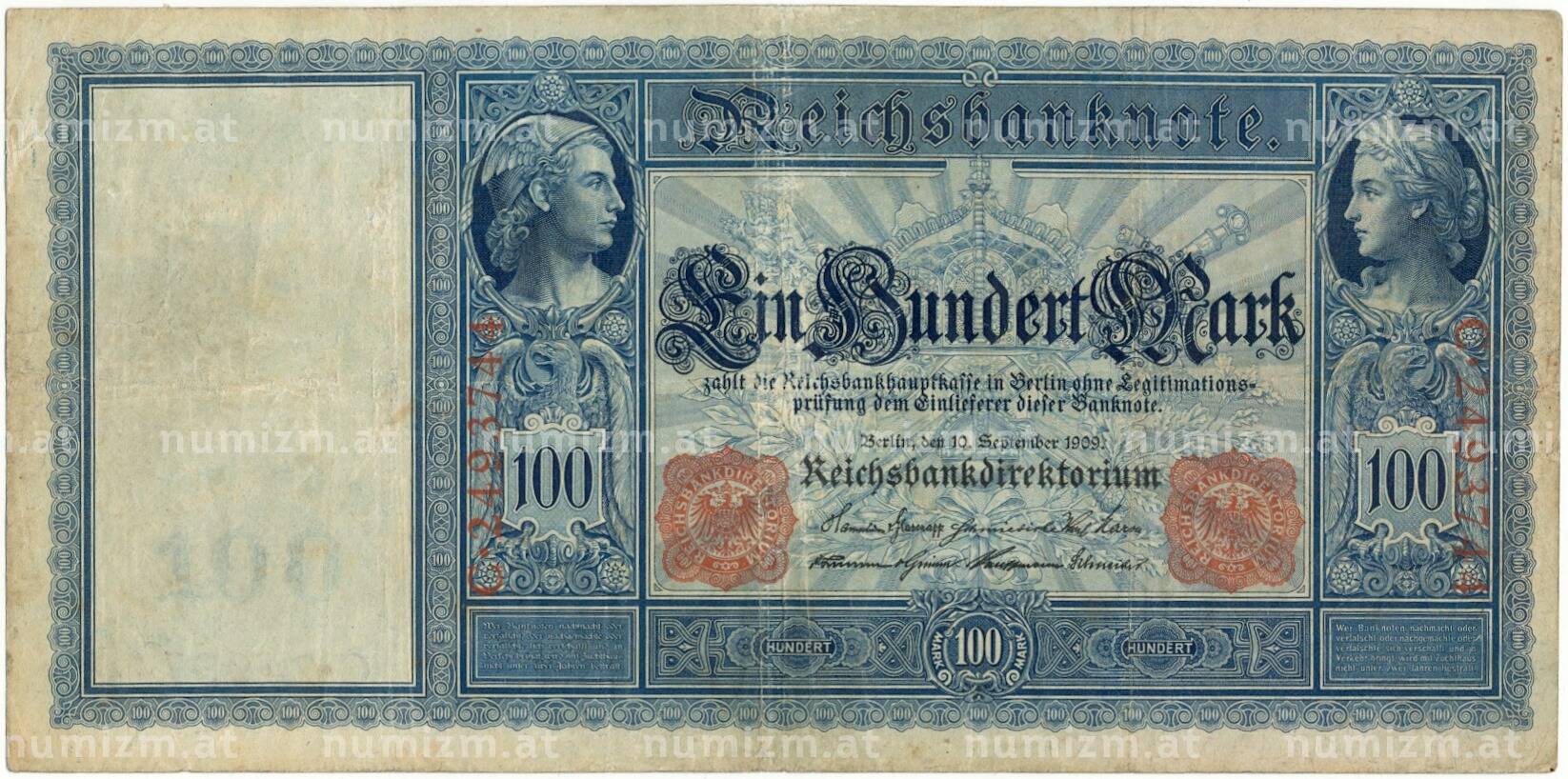 • Банкнота 100 марок 1909 года Германия (Артикул: B2-9405) — Фото №1 Банкнота 100 марок 1909 года Германия (Артикул: B2-9405) — Фото №2
