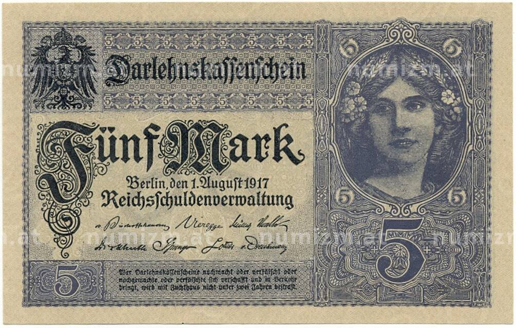 20.01.2025Интернет магазин «Нумизмат» предлагает приобрести 5 марок 1917 года Германия.