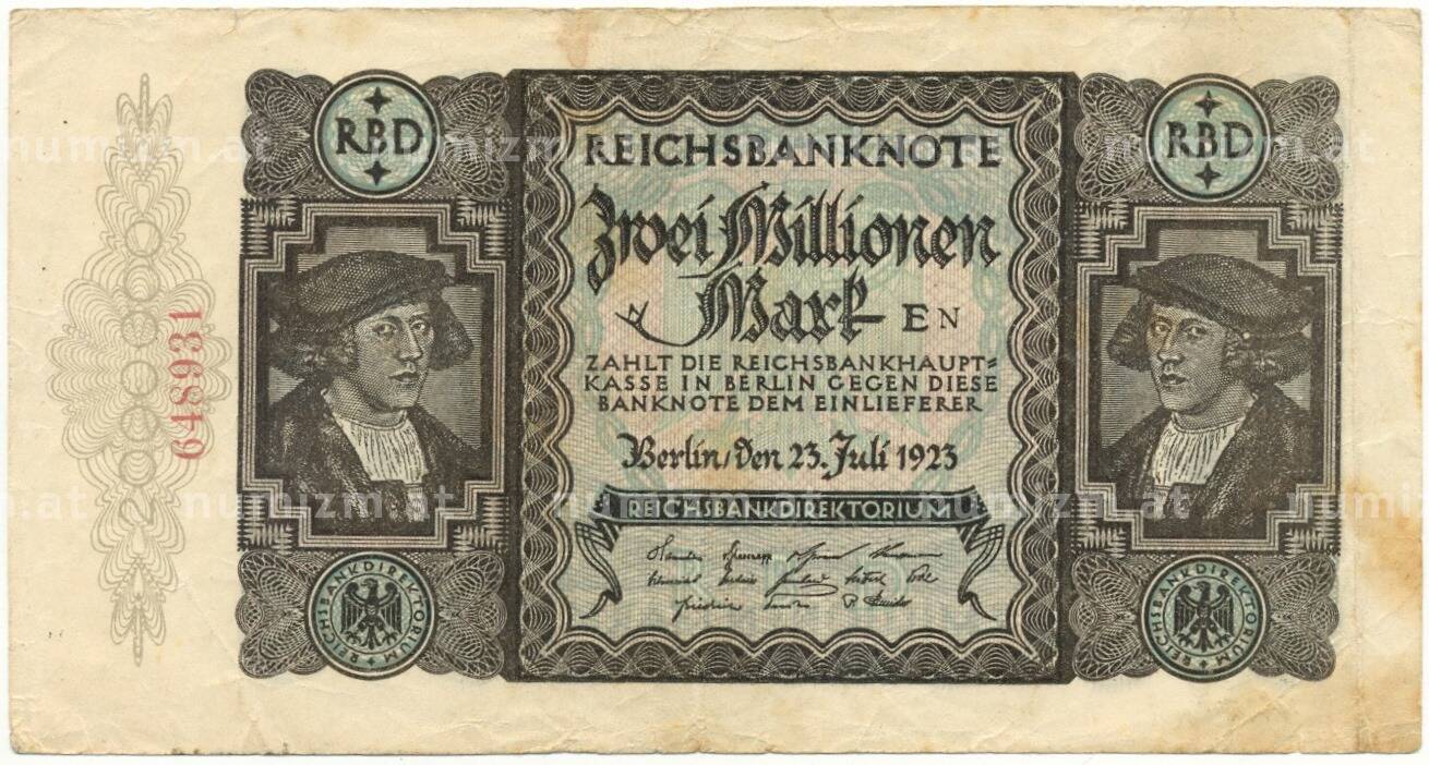 Банкнота 2 миллиона марок 1923 года Германия (Артикул: B2-9441): подробные характеристики, качественные фотографии в высоком разрешении, низкая цена.