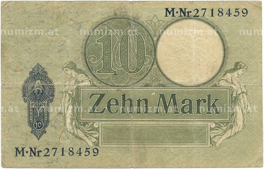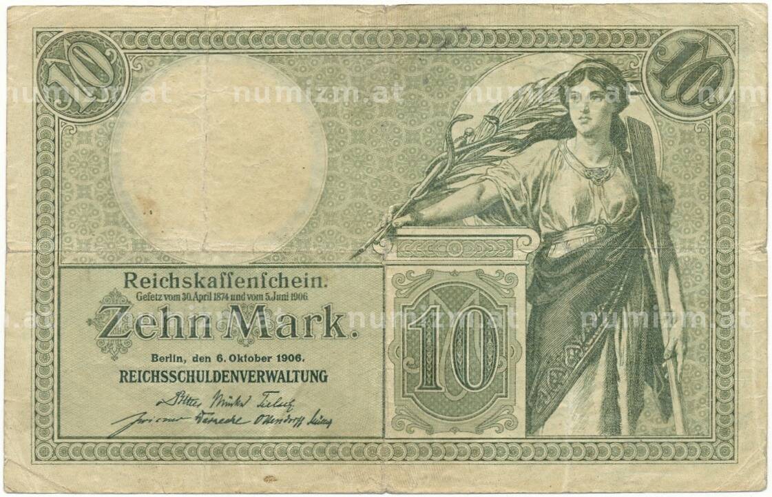 Банкнота 10 марок 1906 года Германия (Артикул: B2-9460): подробные характеристики, качественные фотографии в высоком разрешении, низкая цена.