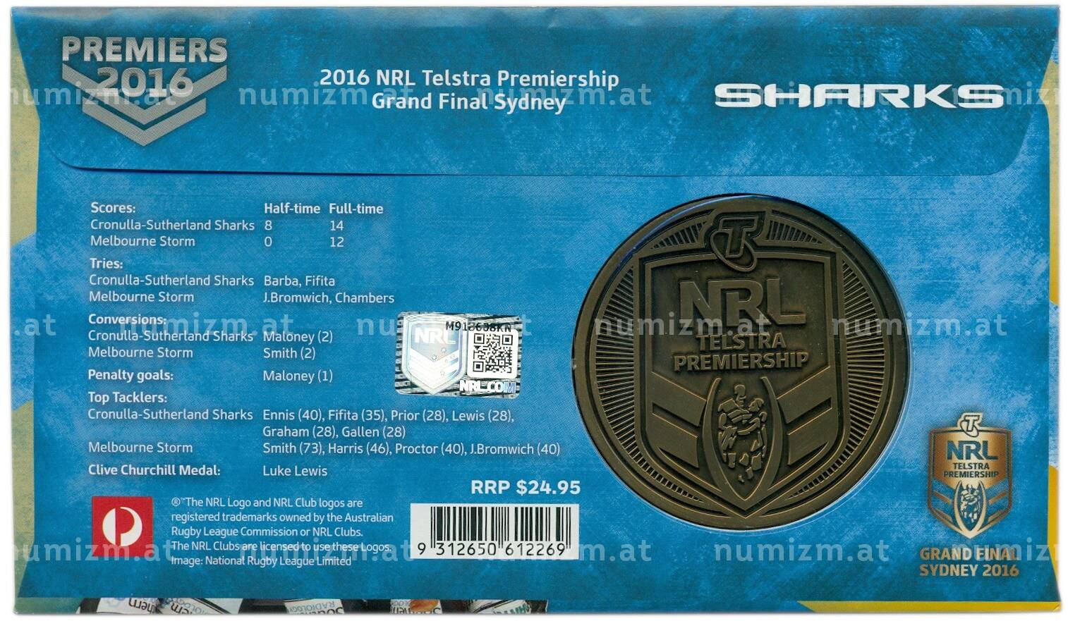 20.01.2025Интернет магазин «Нумизмат» предлагает приобрести Памятная медаль 2016 года Австралия «Кроналла-Сазерленд Шаркс» (в конверте с маркой).