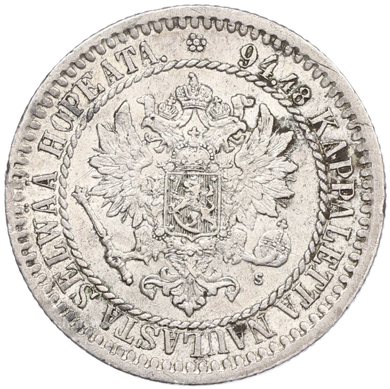 20.01.2025Интернет магазин «Нумизмат» предлагает приобрести 1 марка 1865 года Русская Финляндия.
