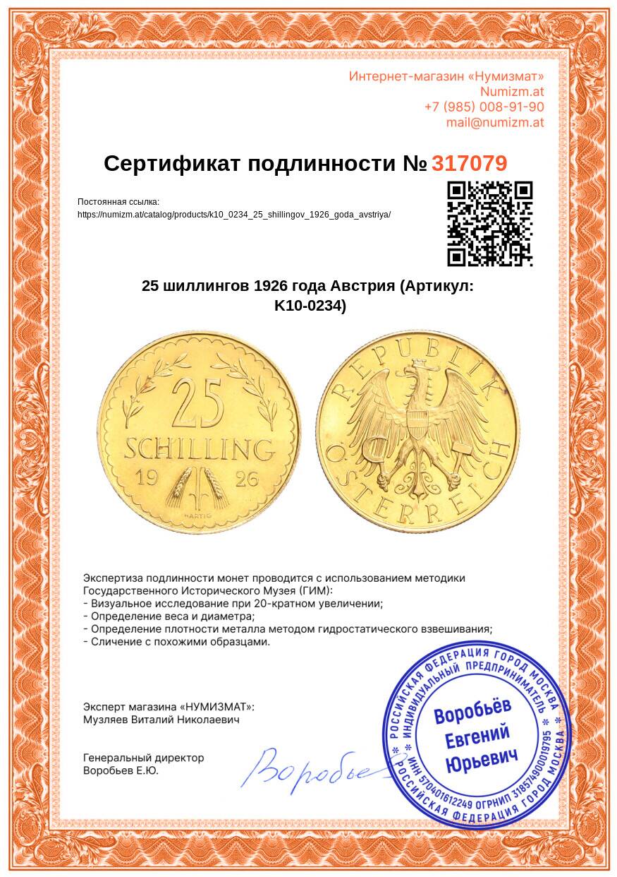 Купить 25 шиллингов 1926 года Австрия по привлекательной цене можно в нашем интернет-магазине — Вам достаточно оформить заказ на сайте. Все монеты, представленные в каталоге, находятся в наличии на нашем складе.
