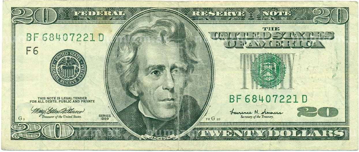 Банкнота 20 долларов 1999 года США (Артикул: K10-0309): подробные характеристики, качественные фотографии в высоком разрешении, низкая цена.