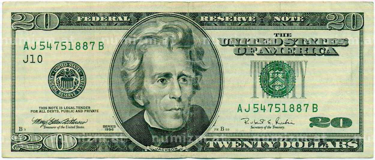Банкнота 20 долларов 1996 года США (Артикул: K10-0314): подробные характеристики, качественные фотографии в высоком разрешении, низкая цена.