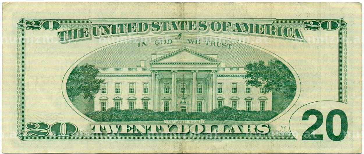 • Банкнота 20 долларов 1996 года США (Артикул: K10-0314) — Фото №1 Банкнота 20 долларов 1996 года США (Артикул: K10-0314) — Фото №2
