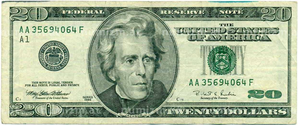 Банкнота 20 долларов 1996 года США (Артикул: K10-0376): подробные характеристики, качественные фотографии в высоком разрешении, низкая цена.
