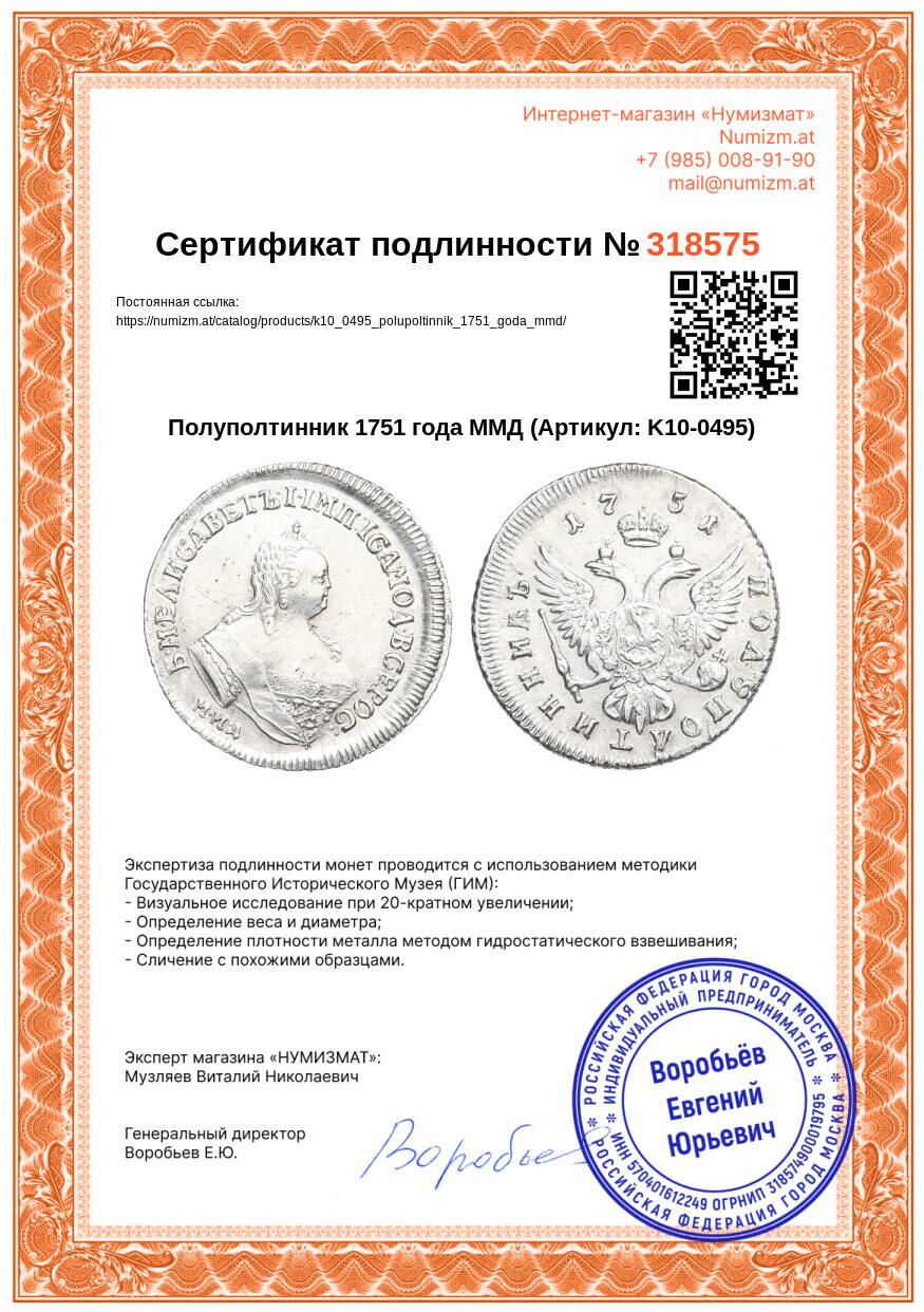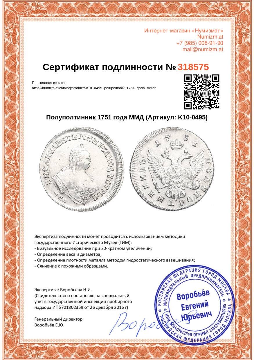 Купить Полуполтинник 1751 года ММД по привлекательной цене можно в нашем интернет-магазине — Вам достаточно оформить заказ на сайте. Все монеты, представленные в каталоге, находятся в наличии на нашем складе.