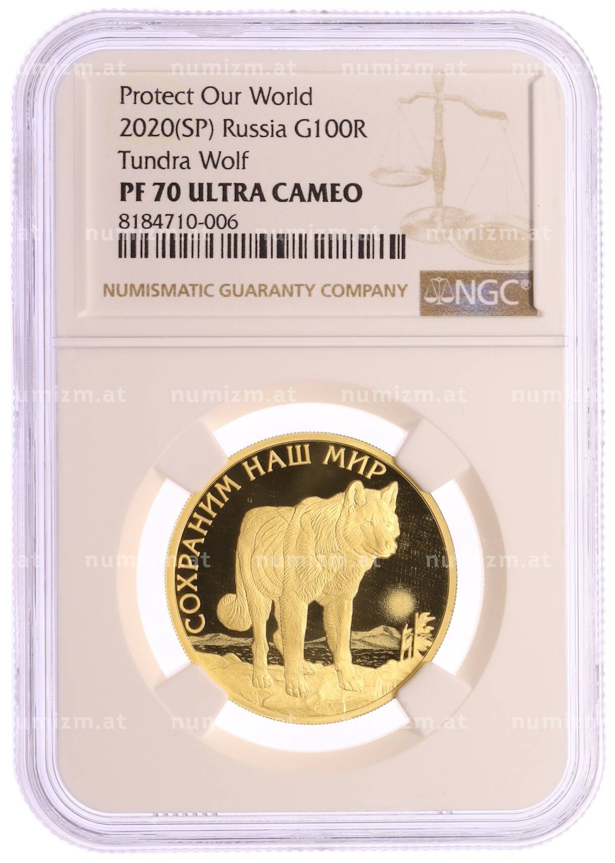 Купить 100 рублей 2020 года СПМД «Сохраним наш мир — Полярный волк» в слабе NGC (PF70 ULTRA CAMEO) по привлекательной цене можно в нашем интернет-магазине — Вам достаточно оформить заказ на сайте. Все монеты, представленные в каталоге, находятся в наличии на нашем складе.